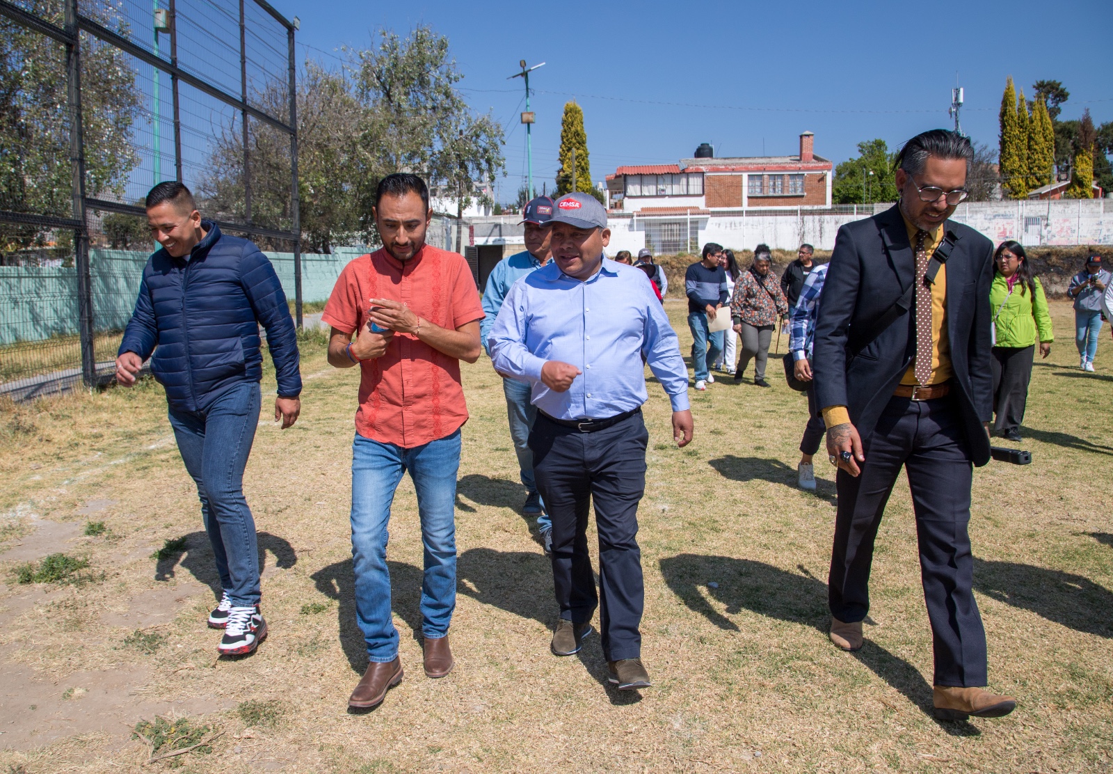 Más tarde, el presidente municipal realizó un recorrido por la cancha de futbol del deportivo, con el objetivo de supervisar las condiciones de este espacio deportivo y analizar acciones que permitan fortalecer su uso para la práctica del deporte y la convivencia comunitaria.