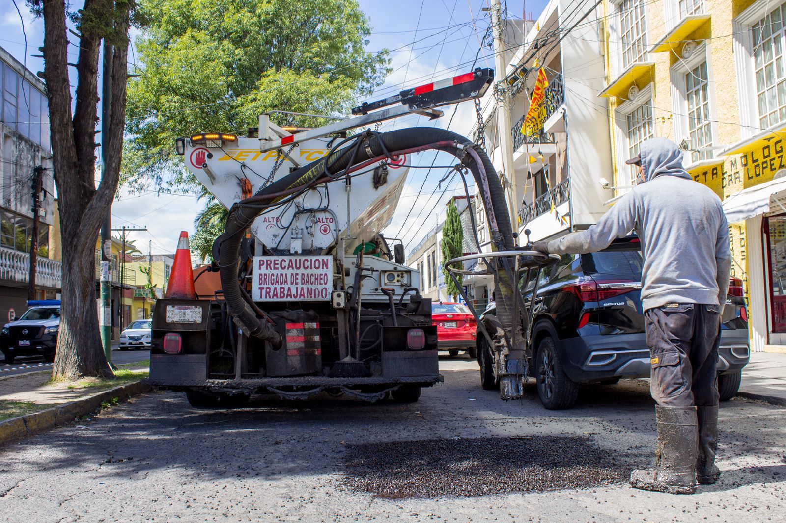 El equipo de bacheo, adscrito a la Dirección de Obras Públicas, trabaja de lunes a viernes, en un horario de 08:00 a 19:00 horas, interviniendo de manera continua las diferentes zonas del municipio y sus siete comunidades.