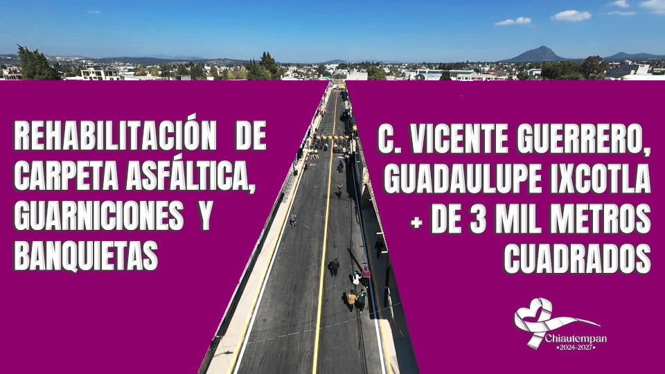 La alcaldesa de Chiautempan, Blanca Angulo Meneses entregó la rehabilitación de la calle Vicente Guerrero en Ixcotla, esto como parte del trabajo continuo del gobierno municipal en el mejoramiento de vialidades en comunidades.