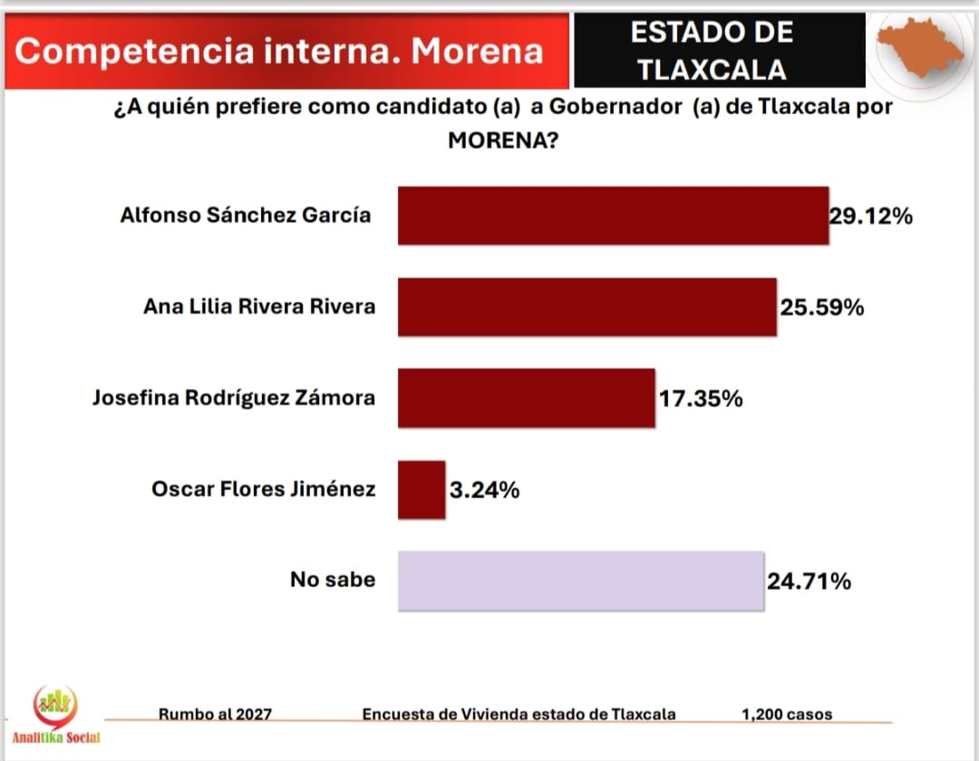 Morena Lidera preferencias en Tlaxcala; Alfonso Sánchez y Ana Lilia Rivera, los aspirantes con más respaldo