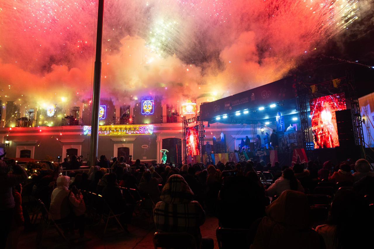 La noche culminó con un espectáculo de pirotecnia que iluminó el cielo huamantleco, llenando de luz, color y emoción el corazón de los asistentes. Entre aplausos y sonrisas, el público disfrutó después de la presentación artística de “Sam del Carmen”, marcando así el inicio de días llenos de cultura, tradición y vida.