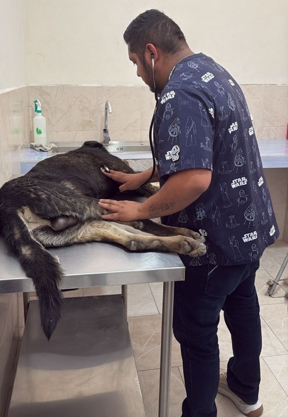 A su ingreso, el canino presentaba severas lesiones en la parte posterior de su cuerpo, lo que inicialmente provocó la pérdida de movilidad. Tras ser valorado por el equipo médico veterinario en nuestras instalaciones, se determinó que, además de las afectaciones visibles, existían lesiones internas de gravedad.