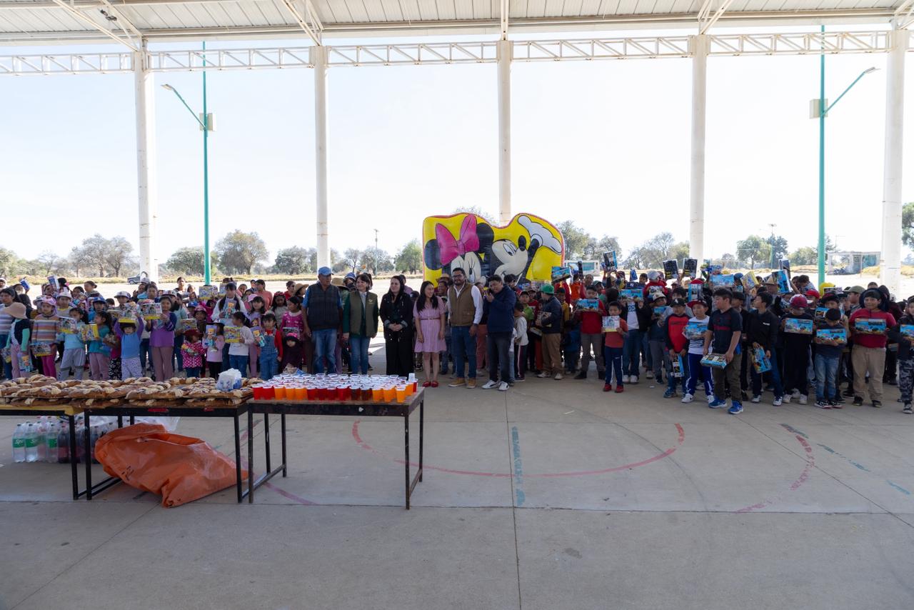 De manera especial, el presidente municipal también acudió a la Casa Ejidal, donde entregó juguetes a las hijas e hijos de campesinas y campesinos de Huamantla, reconociendo el valor del campo y de las familias que todos los días trabajan la tierra y sostienen una parte fundamental del municipio.