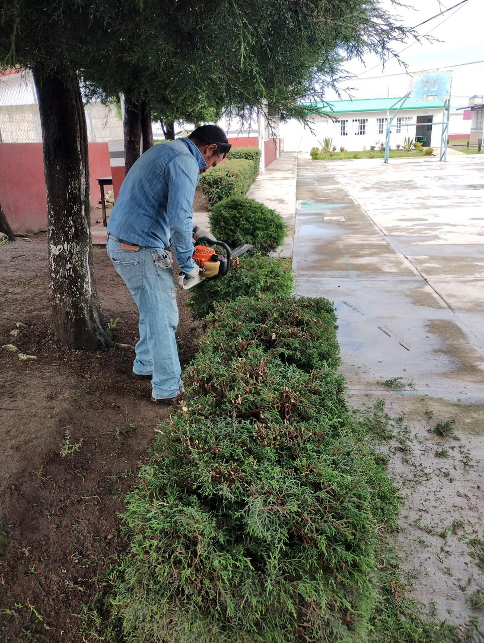Asimismo, las cuadrillas realizaron la poda de pasto frente al Lienzo Charro y el desyerbe del camellón en esa misma zona; además, se llevaron a cabo acciones de poda de árboles y limpieza en la escuela Lázaro Cárdenas, con el objetivo de mantener espacios seguros y agradables para estudiantes y docentes.