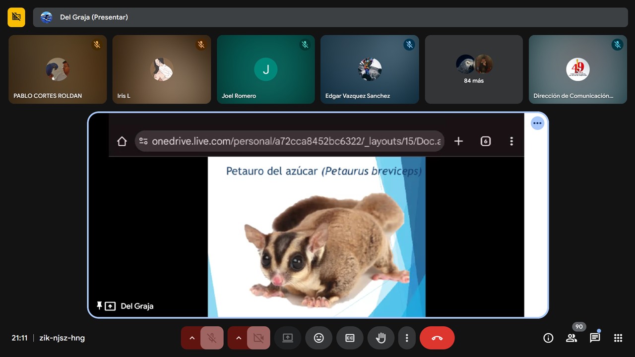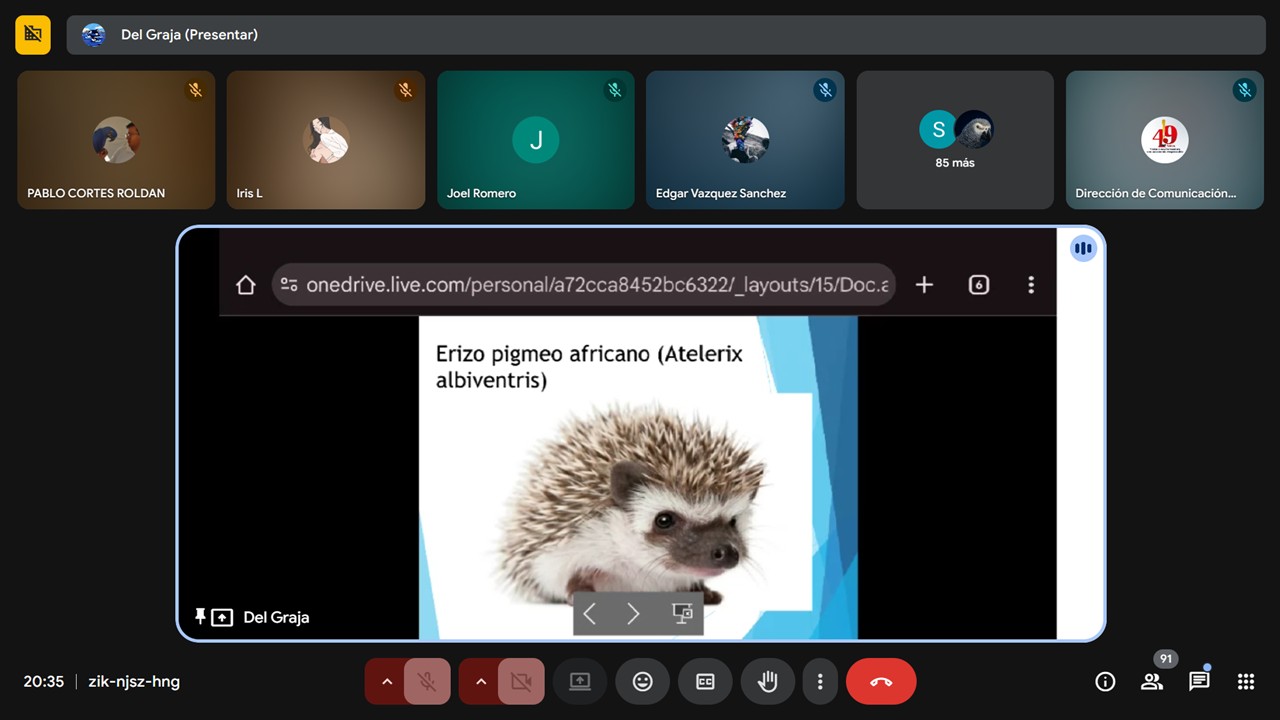 La segunda ponencia fue 𝐍𝐮𝐭𝐫𝐢𝐜𝐢𝐨́𝐧 𝐝𝐞 𝐩𝐞𝐪𝐮𝐞𝐧̃𝐨𝐬 𝐦𝐚𝐦𝐢́𝐟𝐞𝐫𝐨𝐬 𝐦𝐚𝐧𝐭𝐞𝐧𝐢𝐝𝐨𝐬 𝐜𝐨𝐦𝐨 𝐚𝐧𝐢𝐦𝐚𝐥 𝐝𝐞 𝐜𝐨𝐦𝐩𝐚𝐧̃𝐢́𝐚 que impartió la Médico Veterinario Zootecnista Delia Grajales Nájera, quien abordó hábitos y cuidados alimenticios en hurones, erizos, conejos, chinchillas, petauros y cuyos.
