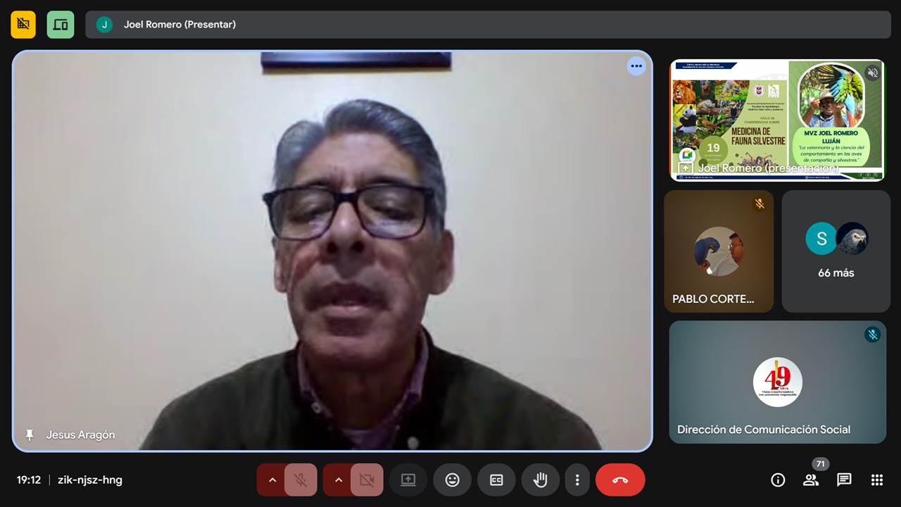 La primera conferencia abordó el tema 𝐋𝐚 𝐯𝐞𝐭𝐞𝐫𝐢𝐧𝐚𝐫𝐢𝐚 𝐲 𝐥𝐚 𝐜𝐢𝐞𝐧𝐜𝐢𝐚 𝐝𝐞𝐥 𝐜𝐨𝐦𝐩𝐨𝐫𝐭𝐚𝐦𝐢𝐞𝐧𝐭𝐨 𝐞𝐧 𝐥𝐚𝐬 𝐚𝐯𝐞𝐬 𝐝𝐞 𝐜𝐨𝐦𝐩𝐚𝐧̃𝐢́𝐚 𝐬𝐢𝐥𝐯𝐞𝐬𝐭𝐫𝐞𝐬, y fue impartida por el Médico Veterinario Zootecnista Joel Romero Luján, quien expuso sobre el cuidado y entrenamiento de distintas especies de aves.