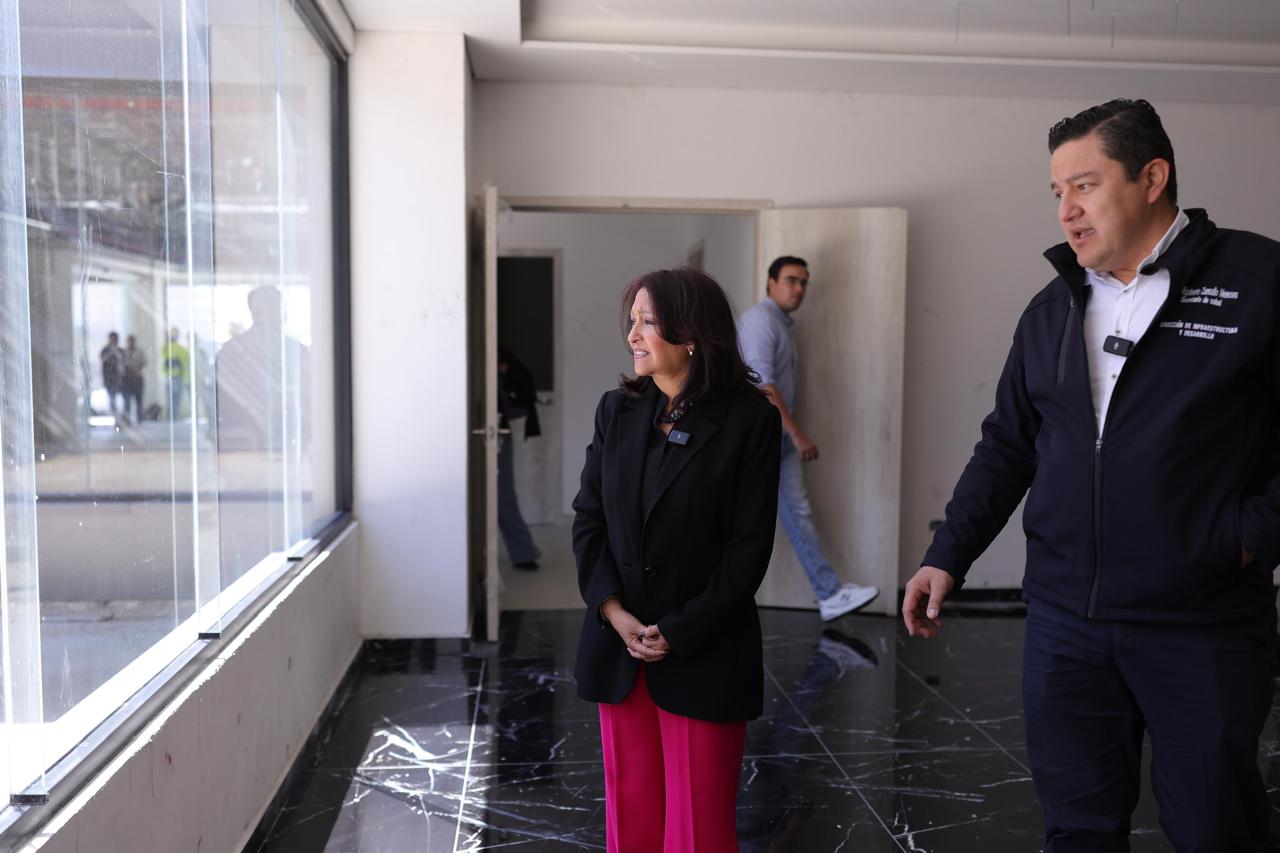 Durante el recorrido, se destacó el desarrollo de áreas especializadas como hidroterapia: “Prácticamente ya está casi concluida esta tina que va a ser la de hidroterapia”, indicó.
