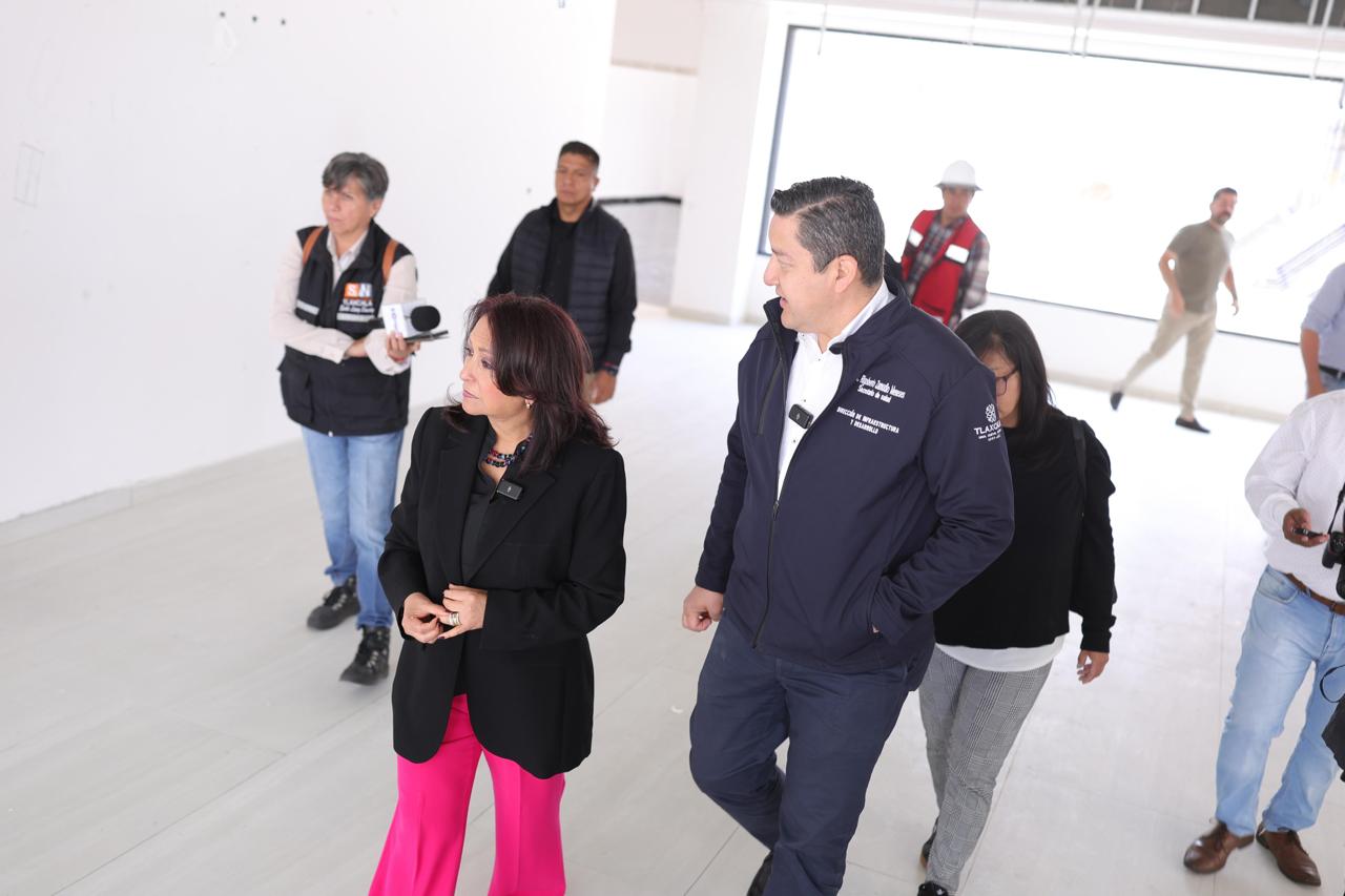La gobernadora Lorena Cuéllar Cisneros supervisó los avances en la construcción del Centro de Imagenología y del Centro de Rehabilitación, Inclusión y Autismo Tlaxcala (CRIAT), ubicados en la zona de hospitales del municipio de Apetatitlán.