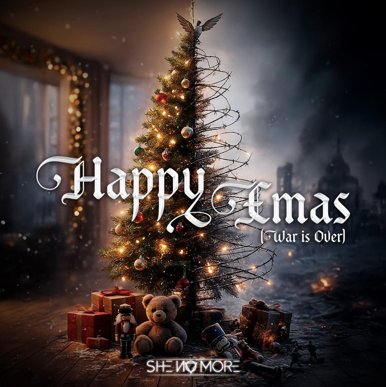 La banda mexicana de rock sinfónico activista SHE NO MORE presenta su nuevo sencillo para la temporada navideña: “Happy Xmas (War Is Over)”, el clásico de Yoko Ono y John Lennon. Esta versión busca transmitir un mensaje de compasión y solidaridad con quienes en esta época de fiestas no tienen nada que celebrar, pues mientras gran parte del mundo se prepara para la Navidad, en muchos otros lugares millones de personas sufren el terror de guerras que continúan, dejándolas sin ninguna razón para celebrar.