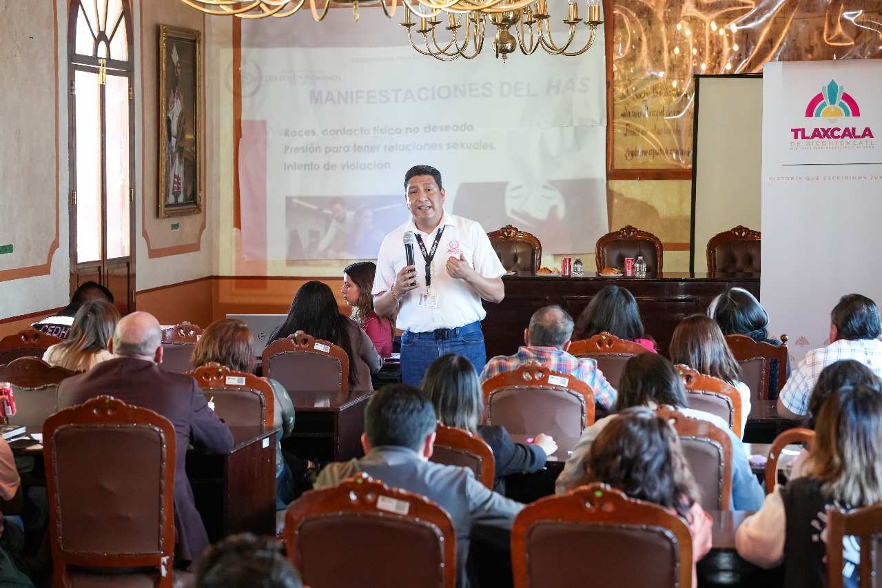 Para fortalecer un ambiente laboral basado en la equidad, la igualdad y el respeto, el Ayuntamiento de Tlaxcala, que encabeza el presidente municipal Alfonso Sánchez García, llevó a cabo la capacitación “Derechos Humanos y Cultura de Paz en el Ámbito Laboral”, dirigida a servidores públicos del municipio.