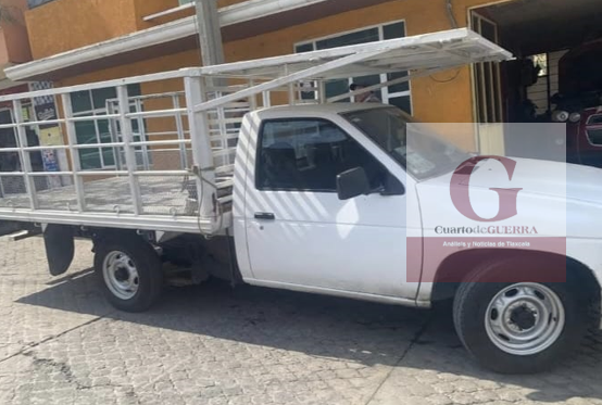 Horas más tarde, se reportó el robo de una camioneta Nissan, tipo estaquitas, modelo 2001, color blanco, en la colonia El Alto, Chiautempan.
