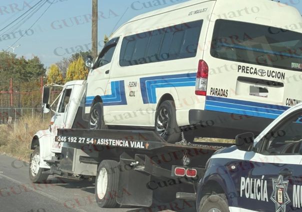 Sin embargo, la realidad en las calles es diferente. Recientemente, se reportó una presunta "cacería" contra conductores de unidades de "flechas azules". En un caso referido, un chofer que se negó a pagar una supuesta extorsión vio cómo su unidad fue remolcada por una unidad de Grúas Alex y Leo, la cual fue escoltada por la patrulla con número económico 28 de Teolocholco, incluso fuera de su jurisdicción sobre la Vía Corta.