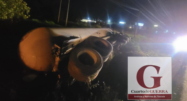 (Alexis P. González) La movilización de corporaciones de seguridad y emergencia y un control del tráfico se registra sobre la carretera Apizaco-Tlaxcala, a la altura del puente de Tlacualoyan, en Yauhquemehcan, tras la volcadura de una pipa cargada de combustible ocurrida la noche de este lunes.