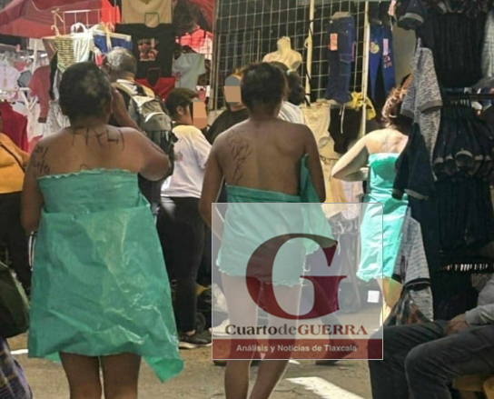 (Alexis P. González) Dos mujeres fueron rapadas y desnudadas por un grupo de comerciantes en la zona del tianguis de Texmelucan, Puebla, durante la tarde de este lunes, tras ser sorprendidas presuntamente intentando cometer un robo.