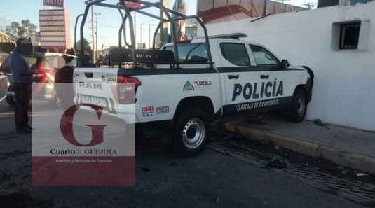 La falta de pericia y el estado de la conductora provocaron que la SUV colisionara de manera lateral contra una patrulla de la Policía Municipal de Tlaxcala, provocando que ésta se impactara contra la pared de un establecimiento de bebidas embriagantes.