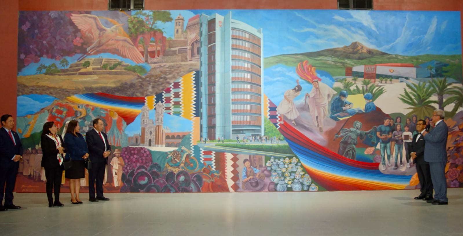 Ambos realizaron la develación del mural conmemorativo “Fundación de Tlaxcala y su proyección mundial” que se ubica en el trascenio del CCU y que podrá ser admirado por los visitantes en los recorridos guiados. El Maestro Héctor Valencia, quien es catedrático de la Facultad de Diseño, Arte y Arquitectura de la UATx, explicó la relevancia de la obra y los elementos que la constituyen, retomando los elementos más representativos de la historia de Tlaxcala.
