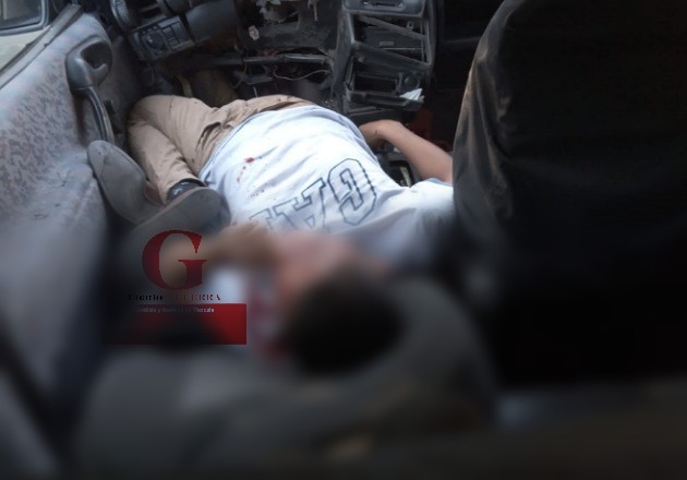 vehículo siniestrado, un Chevrolet Chevy de color azul, salió de la cinta