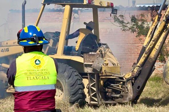 Unen esfuerzos Protección Civil y Policía Municipal de Tlaxcala con el estado y bomberos para proteger a la población de incendio en pastizal