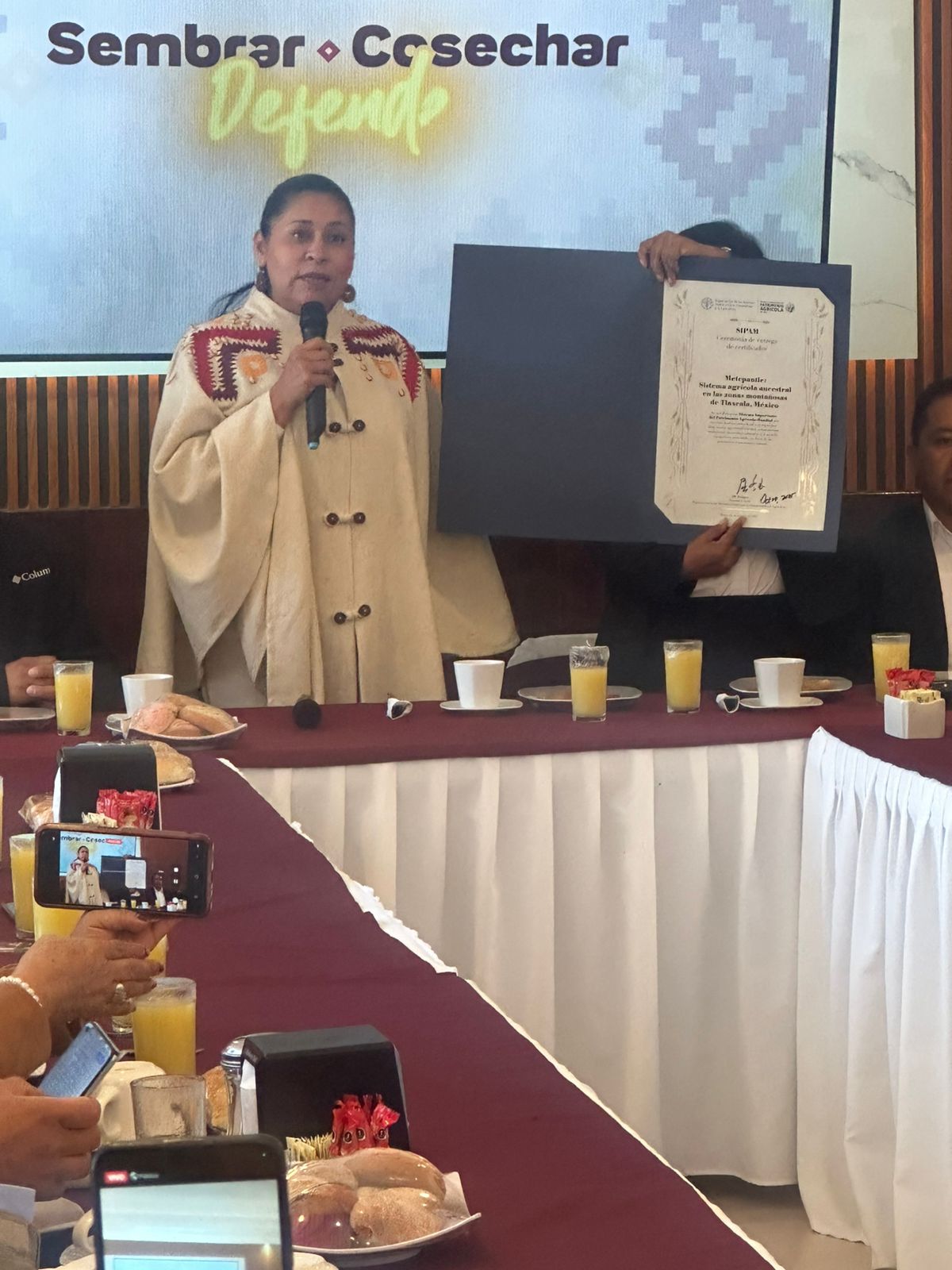 Rivera informó sobre el reconocimiento oficial que la FAO otorgó al sistema agroecológico del maguey y el metepantle, el cual entregará personalmente a la presidenta Claudia Sheinbaum. Anunció además que mandará a hacer copias certificadas para entregarlas a campesinos y campesinas, “guardianes de esta práctica ancestral”.