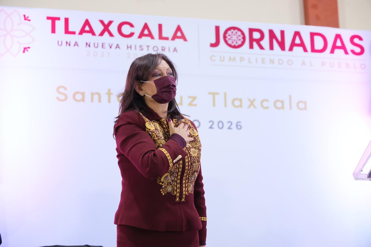 • En la Jornada Informativa “Cumpliendo al Pueblo”, en Santa Cruz Tlaxcala, la gobernadora Lorena Cuéllar afirmó que, hasta el último día de su administración, trabajará de la mano con autoridades de los 60 ayuntamientos para la ejecución de obras sin precedentes para el bienestar de las y los tlaxcaltecas.