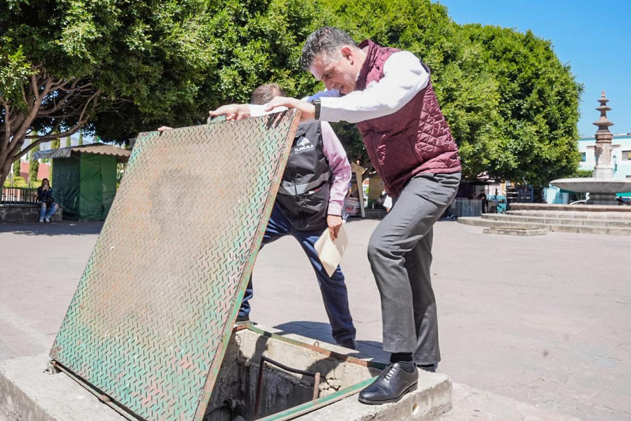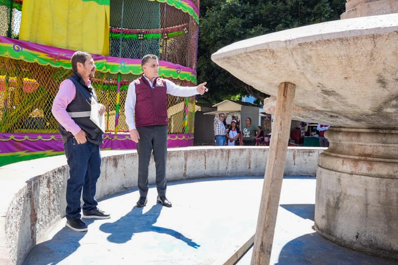 Alcalde Alfonso Sánchez García verifica que las fuentes del centro histórico funcionen correctamente tras mantenimiento