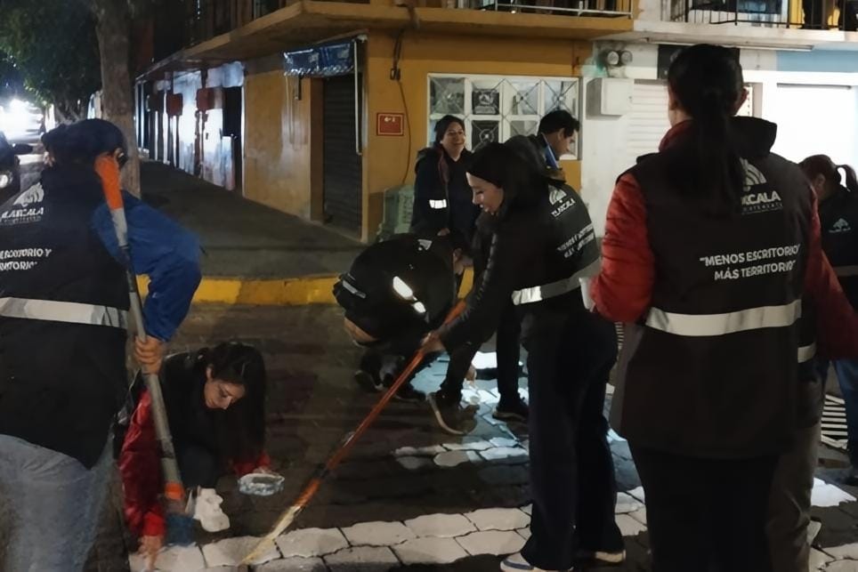 Cuadrillas del Ayuntamiento de Tlaxcala realizaron durante la noche de ayer trabajos de mantenimiento urbano en distintos puntos de la capital, como parte de las acciones de “Más territorio y menos escritorio” que impulsa el gobierno municipal encabezado por Alfonso Sánchez García.