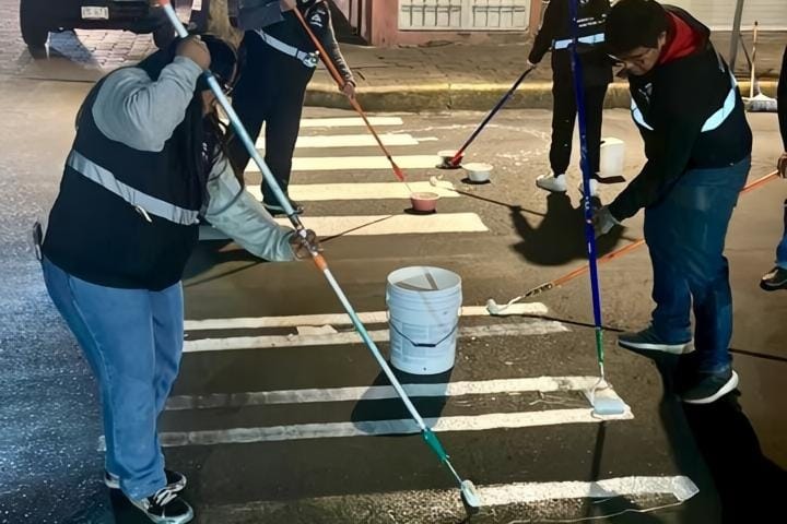 A partir de las 21:00 horas, personal de distintas áreas operativas llevó a cabo labores de pintado de guarniciones en diversas calles del Centro de la ciudad, con el propósito de mejorar la movilidad y reforzar la seguridad vial en las principales avenidas.