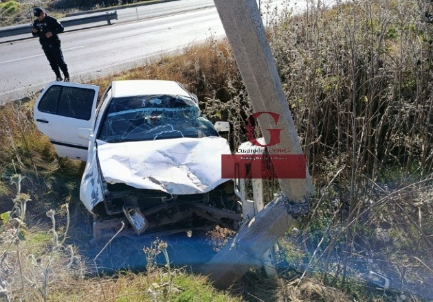 Auto impacta poste de CFE en autopista Texmelucan-Tlaxcala y ocupantes huyen