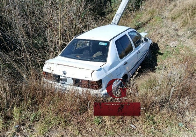 donde un vehículo Volkswagen Jetta color blanco se salió de la carretera e