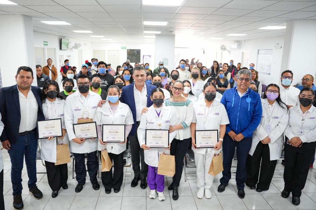 Acompañado de María Estela Álvarez Corona, titular de la Secretaría de Bienestar Tlaxcala; Rubén Espinosa Mejía, director de Participación Ciudadana de la Secretaría de Bienestar en Tlaxcala; y Emmanuel Vázquez Nava, director de Bienestar Humano del municipio, el alcalde reconoció el trabajo de esta unidad médica que, a un año de su apertura, da atención a más de 15 mil beneficiarios.
