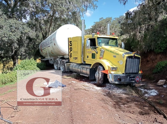 SSC asegura pipa de gas LP de 50 mil litros abandonada en Calpulalpan; tripulantes huyeron en taxi