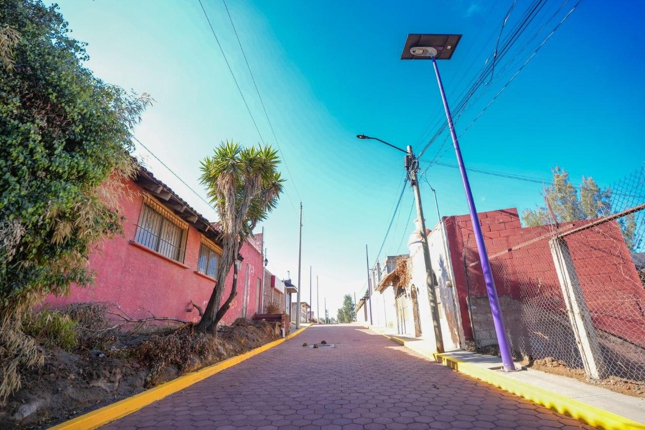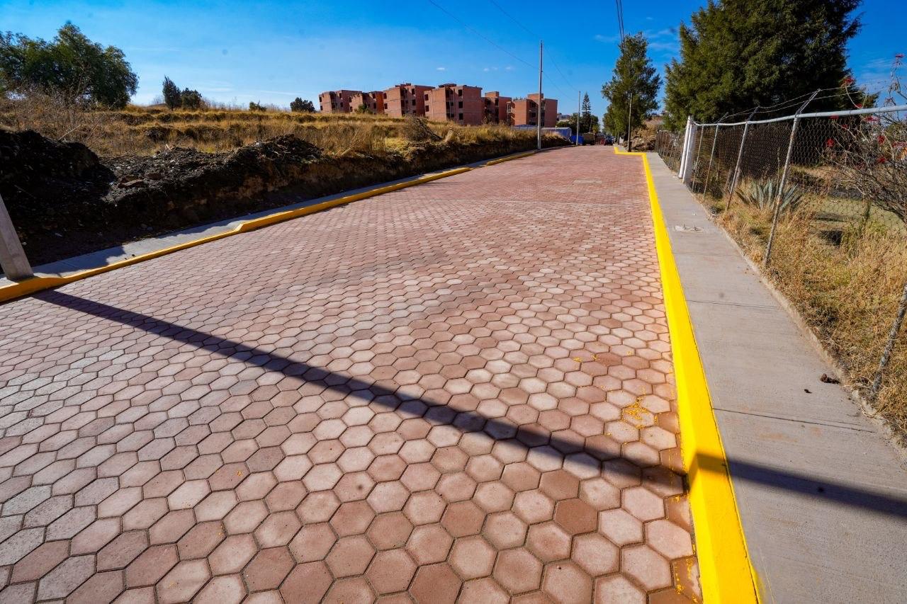 La obra contempla la construcción integral de la vialidad con 300 metros lineales de adoquín y drenaje, la instalación de 23 luminarias, así como la colocación de pintura en 600 metros lineales de guarniciones, también se colocaron 720 metros cuadrados de banquetas.