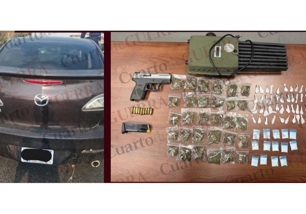 hombres, junto con el armamento, el inhibidor de señales y la droga, fueron