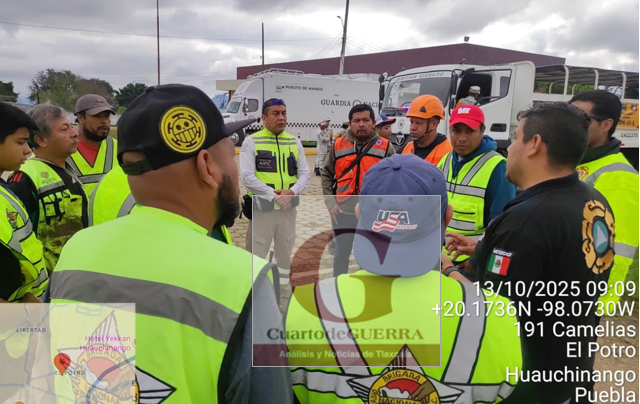 Desde el Puesto de Comando instalado en Huauchinango, los brigadistas tlaxcaltecas se integraron a la logística junto a elementos del Ejército Mexicano, la Guardia Nacional y autoridades locales y estatales.