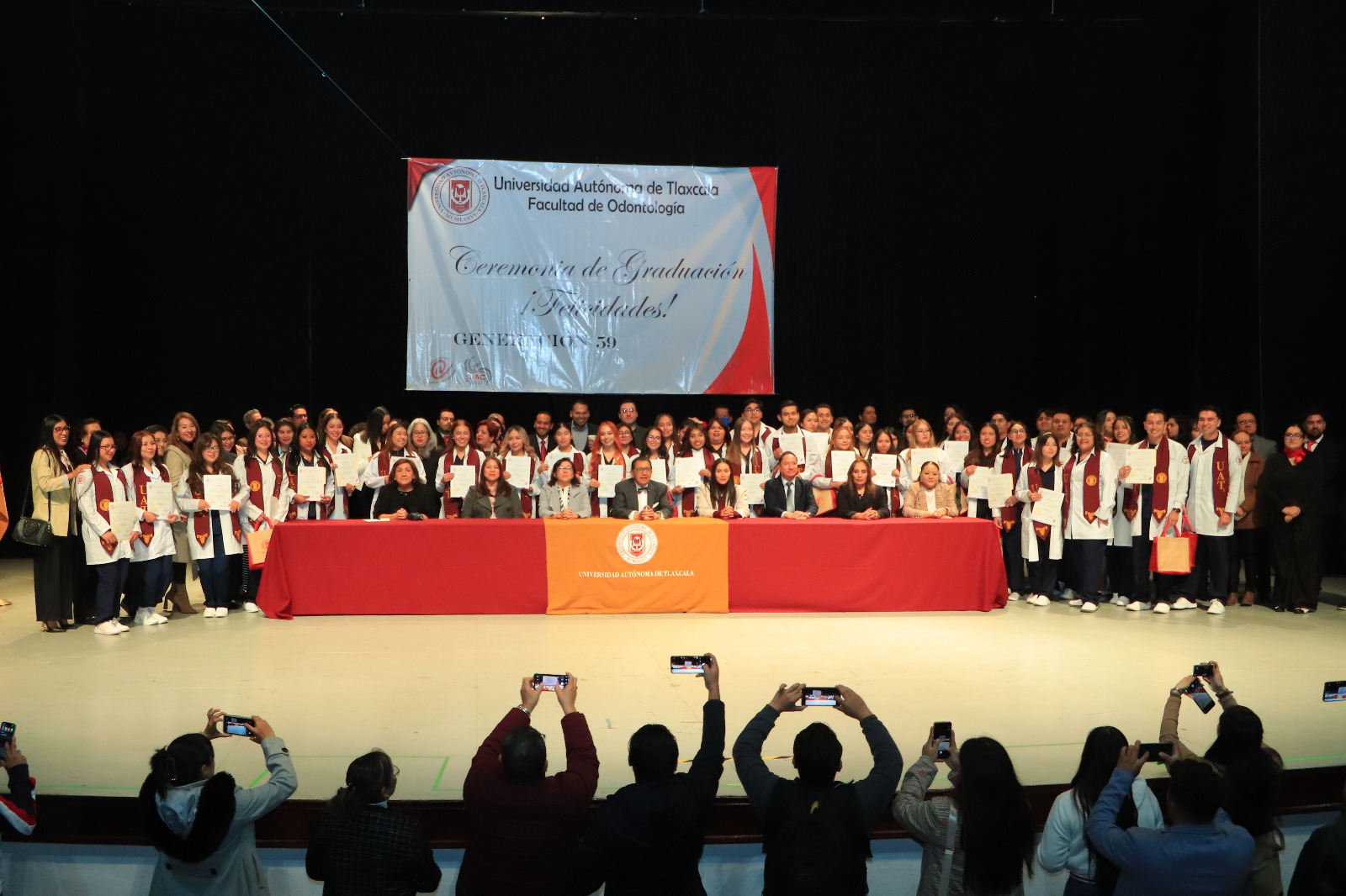 En tanto, el estudiante Diego Sarmiento Hernández, en representación de los 115 graduados, dijo que en la UATx aprendieron que la odontología se ejerce con conocimientos, ética, compromiso, responsabilidad y humanidad, porque cada paciente es una historia y cada tratamiento significa confianza y sus manos están llamadas a servir, por ello, agradeció a los docentes por haber compartido con ellos su experticia, su conocimiento y el amor y compromiso con su profesión, considerando que el verdadero aprendizaje no concluye en el aula sino es un proceso a lo largo de toda la vida.