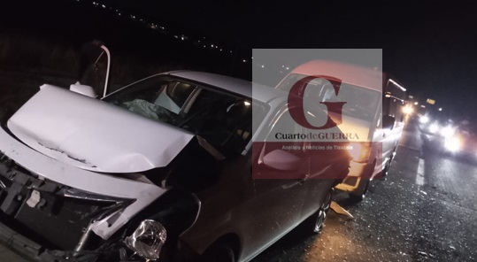 Según testigos, una camioneta fue impactada por alcance por un vehículo Nissan Versa color blanco, lo que provocó que este último fuera chocado por otra camioneta. El vehículo particular es el que resultó más afectado, presentando daños en la parte delantera y trasera.