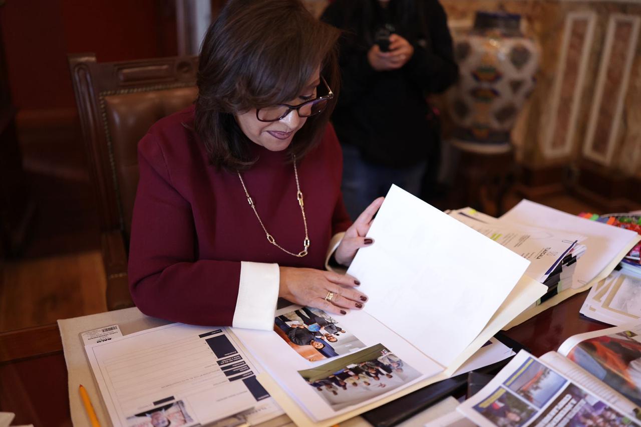 En la audiencia acompañaron a la mandataria los secretarios de Infraestructura, Eduardo Rubén Hernández Tapia; de Impulso Agropecuario, Rafael de la Peña Bernal; de Salud, Rigoberto Zamudio Meneses; de Cultura, Karen Álvarez Villeda; de Medio Ambiente, Pedro Aquino Alvarado; y de Seguridad Ciudadana, Alberto Martín Perea Marrufo.