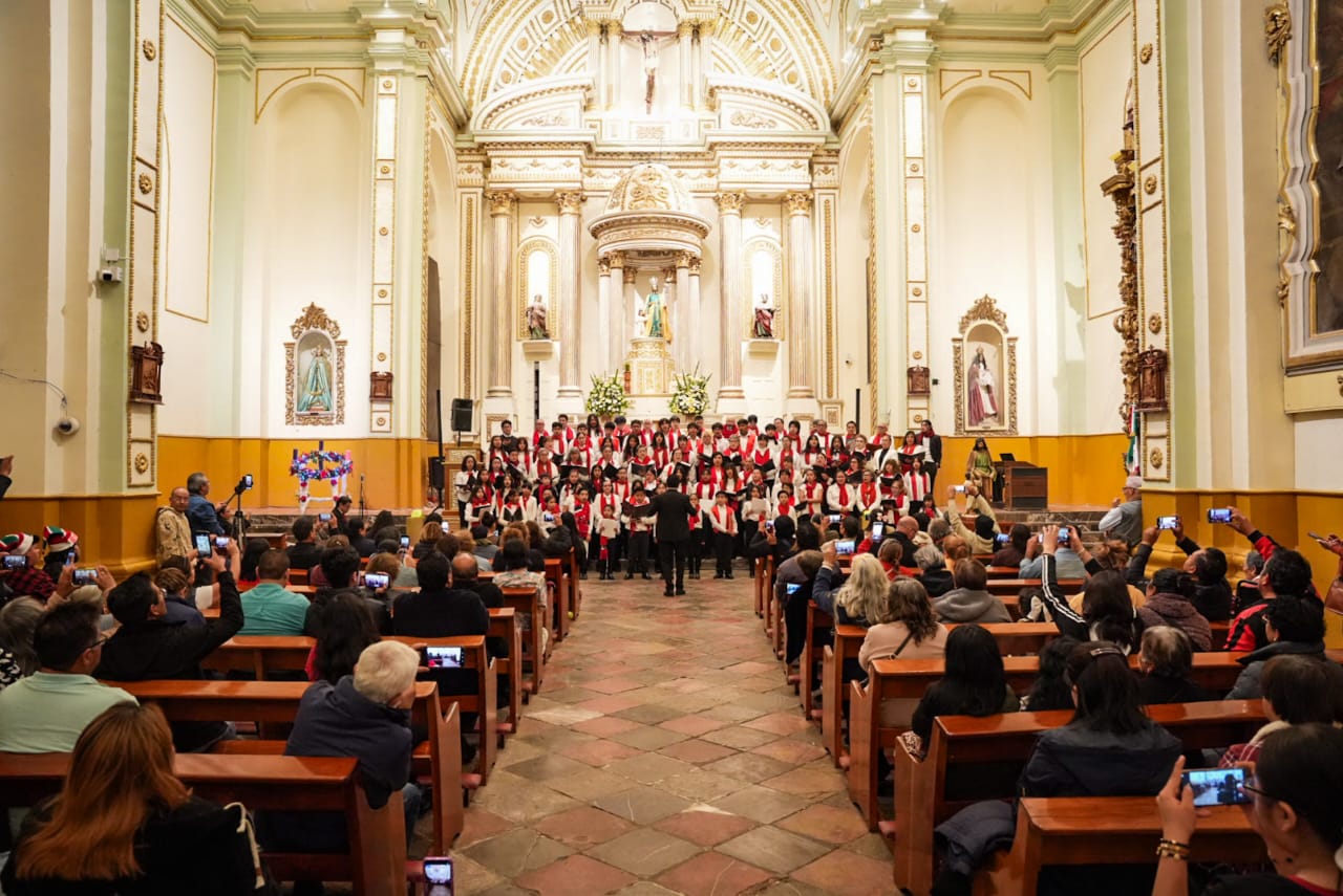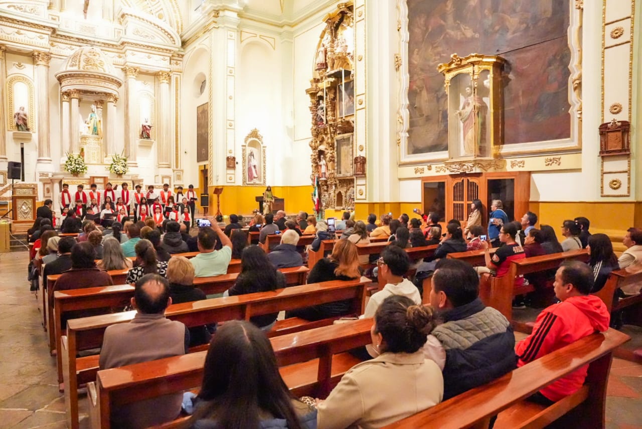 Como parte de las actividades de la Navidad Mágica 2025, el Ayuntamiento de Tlaxcala, que preside Alfonso Sánchez García, presentó al Coro Monumental en el Santuario Diocesano de San José, a través de la Dirección de Cultura y Turismo Municipal