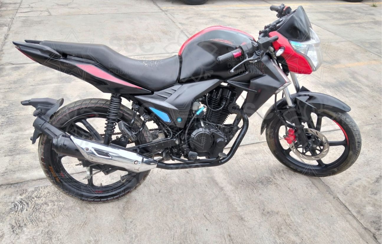 Ante esta situación, elementos estatales procedieron a marcarles el alto para indagar sobre su comportamiento. Al entrevistarlos, solicitaron realizar una inspección preventiva y, al consultar el estatus de la motocicleta en el Sistema Plataforma México, se confirmó que contaba con una predenuncia de robo vigente.