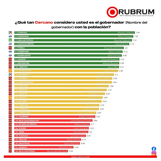 preguntó a los encuestados qué tan cercano consideran que es su gobernador o gobernadora