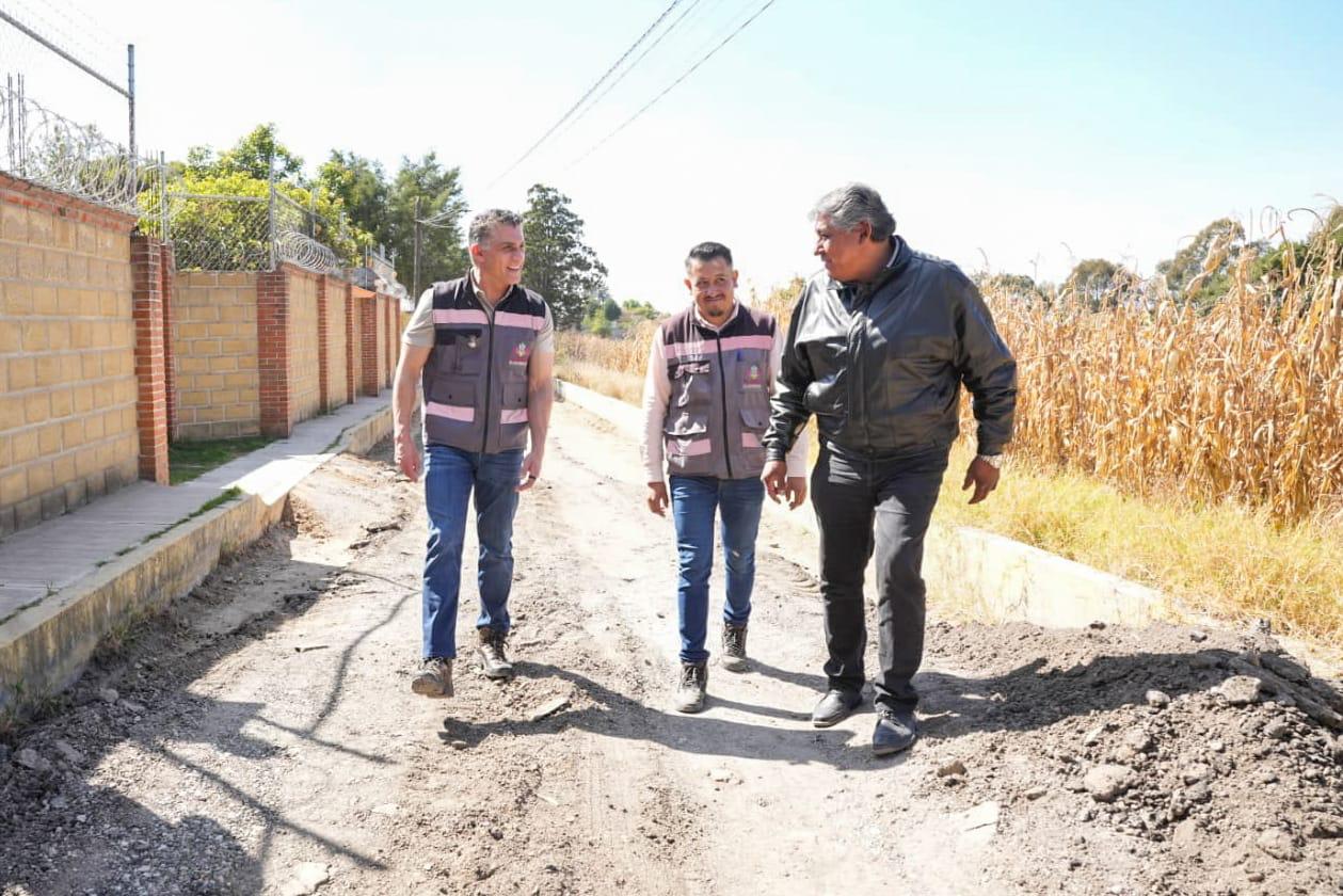 Durante la visita, el alcalde supervisó el estado de las vialidades, acompañado por personal de la Dirección de Obras Públicas y Desarrollo Urbano, a quienes instruyó sobre el adecuado tendido del material y la implementación de mejoras para garantizar una circulación más segura y digna para las y los habitantes de la comunidad.