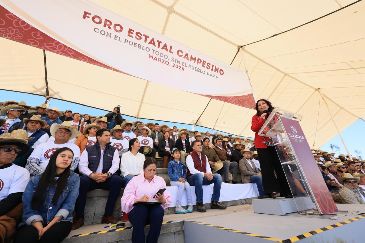 La gobernadora Lorena Cuéllar Cisneros encabezó el Foro Estatal Campesino “Con el pueblo todo, sin el pueblo nada”, realizado en el municipio de Huamantla, donde anunció nueve compromisos en materia de transparencia, fortalecimiento de los programas, seguridad e impulso a la comercialización, como parte de un pacto para dar continuidad a la estrategia de consolidar el sector agropecuario, mejorar la atención y garantizar apoyos para las y los productores de Tlaxcala.