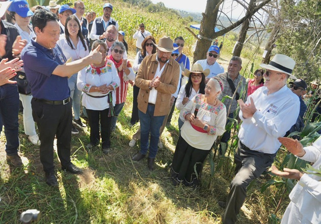 ● El director general de la FAO, Qu Dongyu, participó en la ceremonia de reconocimiento al sistema agrícola ancestral Metepantle, junto a la gobernadora de Tlaxcala, Lorena Cuéllar Cisneros, y el secretario de Agricultura y Desarrollo Rural, Julio Berdegué Sacristán