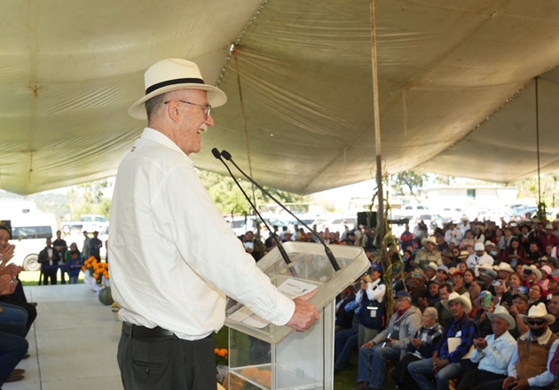 campesinos que lo hacen posible”, expresó el secretario federal, al hacerles un