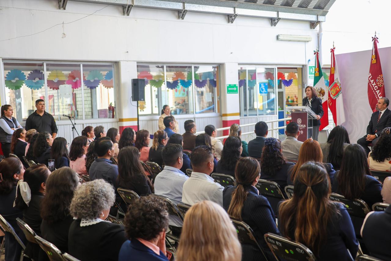 El evento incluyó la entrega de un reconocimiento por 30 años de labor a la docente Rocío Pérez Oropeza, por su servicio a favor de la niñez tlaxcalteca.