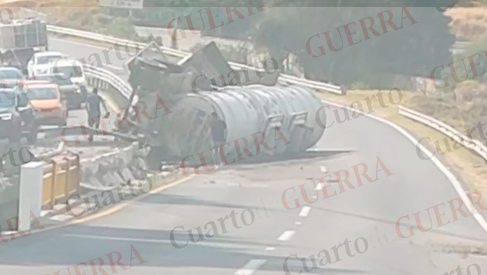 Vuelca pipa con 30 mil litros de gasolina; cierran paso en la Apizaco-Tlaxcala