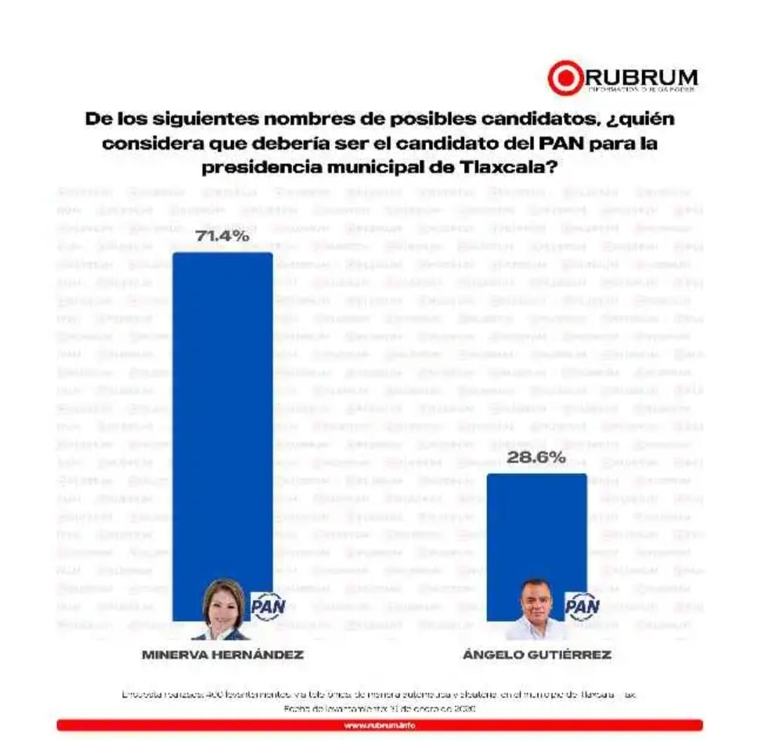 En el caso del PAN, Minerva Hernández obtuvo el 71.4 % de las preferencias, en tanto que para Ángelo Gutiérrez fue el 28.6 %.