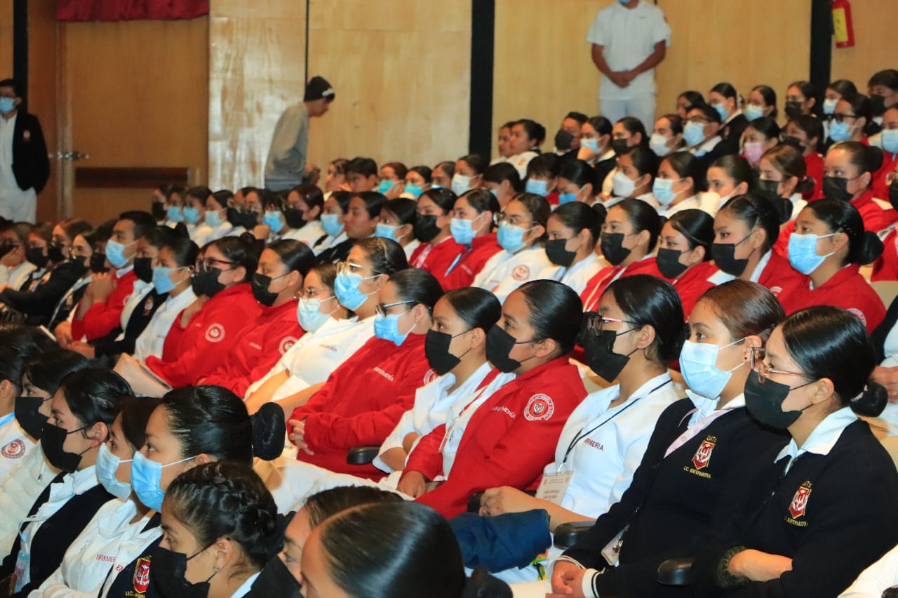 Ante la comunidad estudiantil de Enfermería y Obstetricia, docentes y directivos, el Doctor José Francisco Mauricio García, Director de la Facultad de Ciencias de la Salud, señaló que el propósito de la actividad de los profesionales de la enfermería se centra principalmente en el cuidado integral de los seres humanos, tanto en la promoción, como en la prevención, restauración y alivio del sufrimiento a través de la gestión consciente del cuidado y la adaptación a las nuevas necesidades de salud pública, con una base científica.
