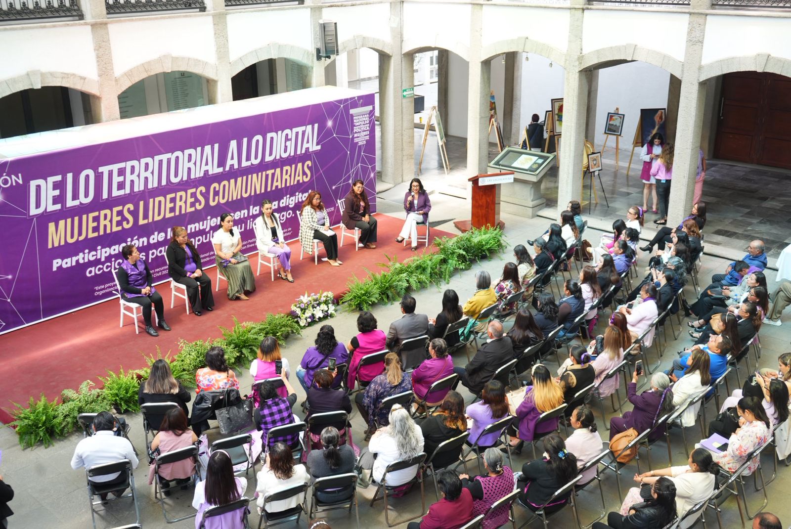 En el Patio Vitral del Congreso del Estado de Tlaxcala se llevó a cabo el espacio de reflexión y aprendizaje “De lo territorial a lo digital: Mujeres líderes comunitarias”, con la participación de representantes de los municipios que formaron parte del proyecto “Participación política de las mujeres en la era digital: acciones para impulsar su liderazgo”.