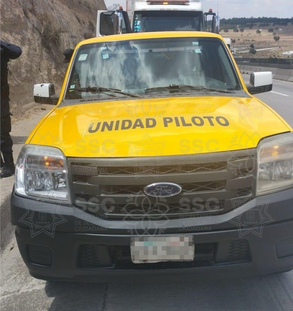 En una segunda acción, en el municipio de Sanctórum, se registró una situación similar, luego de que otro arco REPUVET activara una alerta por la presencia de un vehículo marca Ford, tipo Ranger, con placas de circulación de la Ciudad de México.